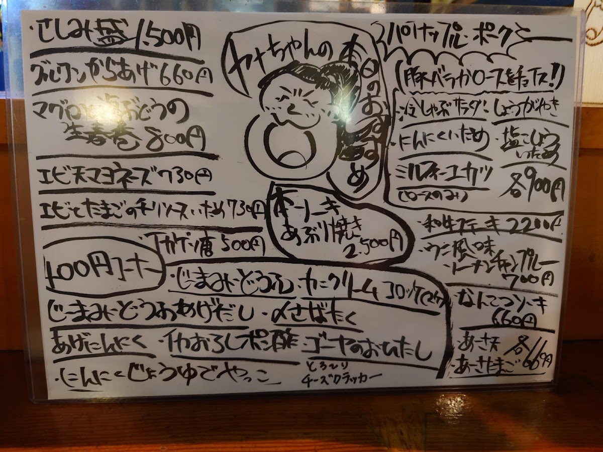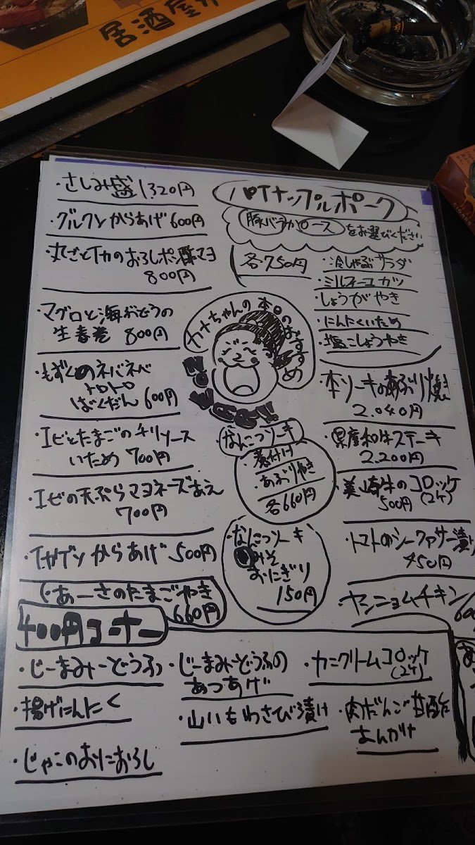 For a light and refreshing dish, the 海ぶどうサラダ (sea grapes salad) is a must-try, offering the natural saltiness and crunch of Okinawan sea grapes. Meanwhile, the ゴーヤチャンプルー (stir-fried bitter melon) brings an authentic taste of Okinawa, featuring the region’s iconic bitter melon mixed with tofu, pork, and eggs. If you're in the mood for seafood, the 刺し身盛り合わせ 小 (small sashimi platter) is a great option, with fresh cuts of fish artfully presented.